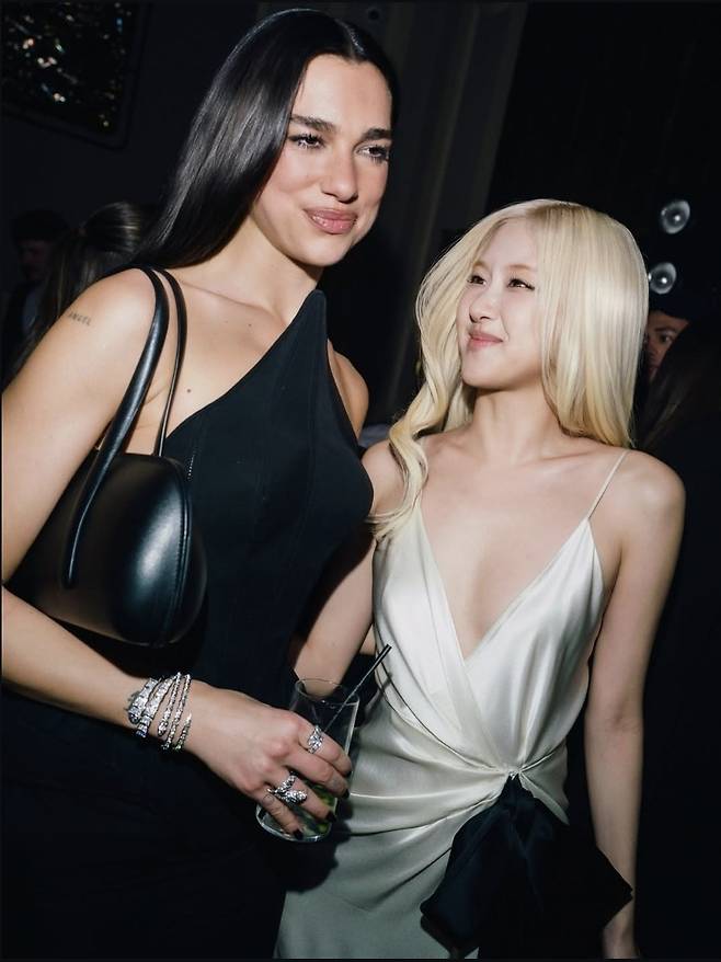 로제는 아이보리 톤 새틴 드레스로 매끈한 실루엣을 강조하며 단정한 글래머 무드를 선보였습니다.