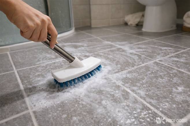 욕실 바닥이나 세면대에 뿌린 뒤 바로 닦기보다 2~3분 정도 두면 오염이 부드럽게 풀린다. 이후 수세미나 부드러운 솔로 문지르면 된다. 마무리 단계에서는 반드시 깨끗한 물로 여러 번 헹궈 잔여물을 제거해야 얼룩이 남지 않는다.