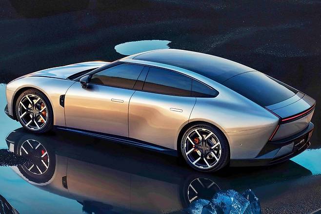 전면부에는 얇은 LED 라이트 스트립이 적용됐다. 양쪽 끝에서 펜더와 범퍼 등 Y자로 갈라지는 라인이 마치 람보르기니 최신 모델을 연상시킨다. A, B 필러와 사이드미러는 블랙 하이그로시로 마감해 세련된 느낌을 더했다. 도어에는 플러시 타입 핸들이 적용됐는데, 독특하게도 앞문이 슈퍼카처럼 위로 열리는 버터플라이 도어다. 후면부 또한 전면부와 비슷한 램프 디자인으로 일체감을 더했으며, 주행 상황에 따라 솟아오르는 가변형 스포일러가 적용됐다.