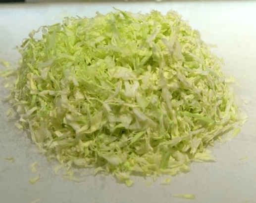 드레싱이 준비되었다면 양배추는 가늘게 채 썰어 찬물에 10분 정도 담가두면 아삭함이 살아난다. 물기를 제거한 뒤 접시에 담고 드레싱을 뿌리면 끝이다.