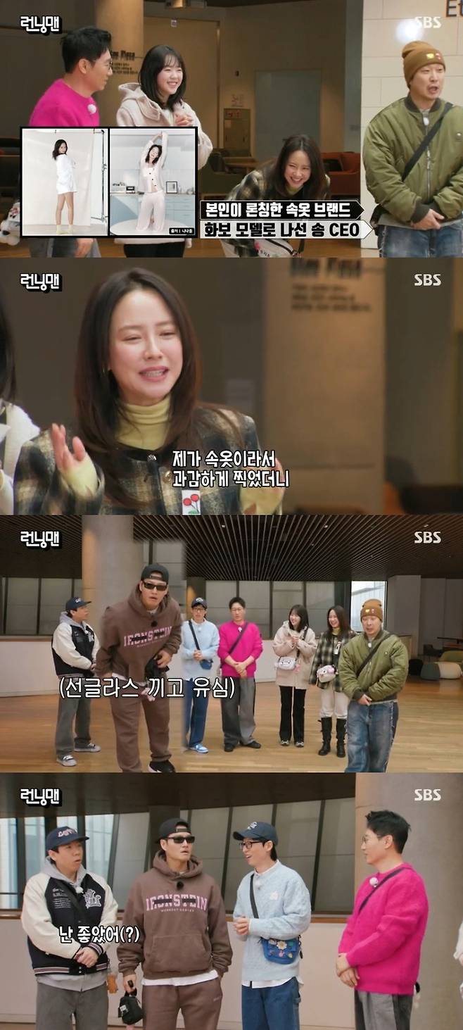 이날 방송에서 제작진은 속옷 브랜드 CEO가 된 송지효가 직접 속옷 화보를 찍은 사진을 공개했습니다.