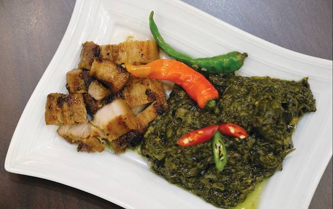 신 음식을 좋아한다면, 새콤한 국물 요리 시니강을 먹어보자. 세계 최고의 수프로 종종 선정되는 필리핀 전통 수프 시니강은 생선이나 해산물 등으로 국물을 내고 라임이나 타마린드, 레몬을 넣어 신 맛을 더한다. 새우나 생선을 주로 사용하지만, 해산물 대신 돼지고기, 소고기 등 육류를 넣기도 한다. 취향에 따라 청경채, 망고, 파인애플 등 야채와 과일도 첨가해 밥과 함께 즐긴다.3. 라잉 (Laing)