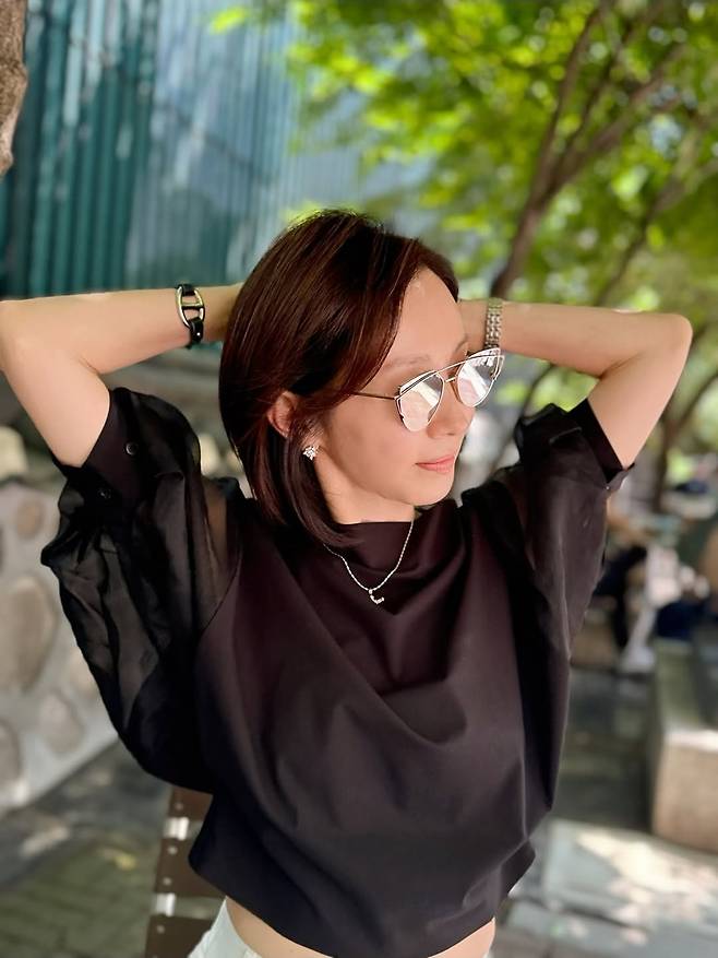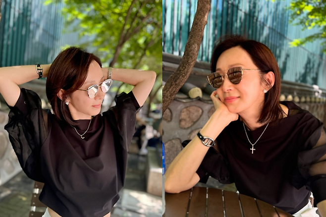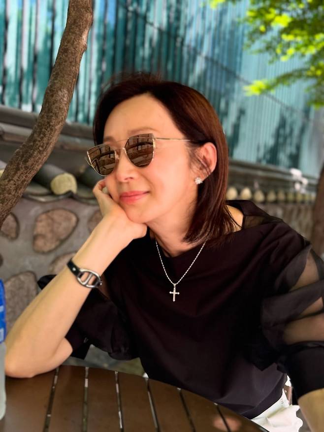 공개된 사진 속 그는 블랙 시스루 블라우스에 세련된 선글라스를 매치, 59세라는 나이가 무색할 만큼 고급스럽고 기품 있는 분위기를 뿜어냈다.