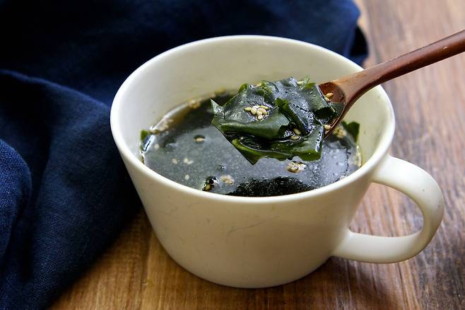 ๋ฏธ์ญ์ ํ๊ตญ์ธ์ ์๋จ์์ ์น์ํ ์ฌ๋ฃ๋ก, **์๊ธด์ฐ(Alginic Acid)**์ด ํ๋ถํด ๋ณ์ ๋ถ๋๋ฝ๊ฒ ํ๊ณ ๋ฐฐ์ถ์ ๋์ต๋๋ค.
