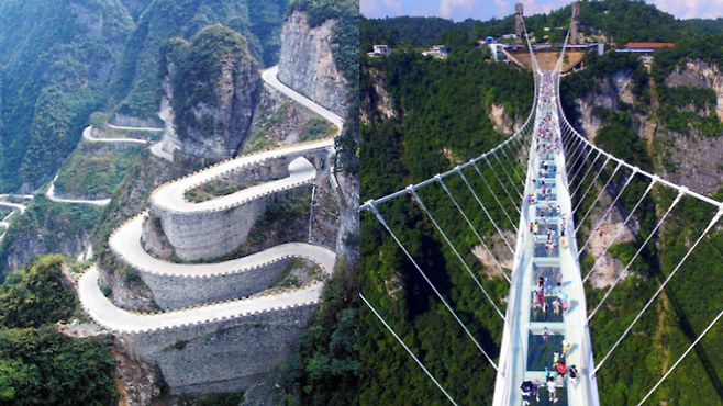 세계에서 가장 높은 유리 다리인 장가계 대협곡 유리다리는 아찔한 스릴을 선사한다. 부모님과 함께 걷다 보면 가슴이 뻥 뚫리는 기분을 느낄 것이다.