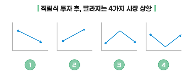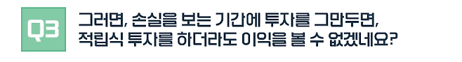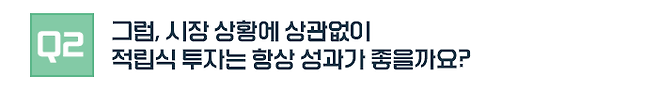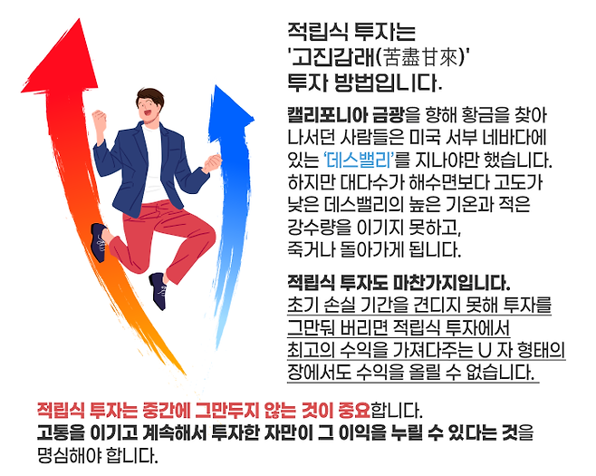 이런 점에서 적립식 투자는 고진감래의 투자 방법이라고 할 수 있습니다. 고통을 이기고 계속해서 투자한 자만이 그 이익을 누릴 수 있으니까요.