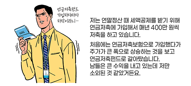 그런데 제가 연금저축펀드로 갈아타자마자 주가가 하락하기 시작했습니다. 남들은 적립식으로 계속해서 투자하면 괜찮을 것이라고 하는데, 정말 괜찮은 건지 모르겠습니다.