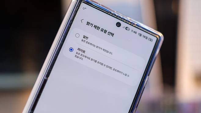 밖에서 화면이 잠깐 밝아졌다가 금방 어두워지는 느낌이면, Display Assistant에서 밝기 제한 유형을 일반에서 라이트로 바꿔보세요. 야외에서도 밝기를 더 오래 유지하는 데 도움이 됩니다.