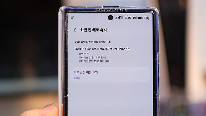 그리고 한 번만 준비해두면, 이후에는 퀵패널(빠른 설정창)에서 켜고 끄는 방식으로 쓰는 게 가장 편합니다. 퀵패널을 내린 뒤 편집에서 화면 켠 채로 유지 타일을 추가해두고, 레시피나 운동 루틴처럼 오래 볼 때만 켰다가 끝나면 꺼두면 됩니다.