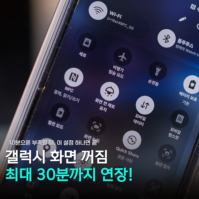정리하면, 갤럭시 자동 꺼짐 늘리기는 기본 설정(최대 10분)만으로는 한계가 있고, Display Assistant의 화면 켠 채로 유지를 켜면 최대 30분까지 유지할 수 있습니다. 한 번 설정해두면 퀵패널에 타일을 추가해 필요할 때만 켰다가 끄는 방식으로 쓰기 편하고요. 야외에서는 밝기 제한 유형을 라이트로 바꾸면 밝기를 더 오래 유지하는 데 도움이 됩니다.