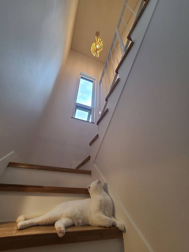 고양이 영역을 2층으로 제한하는 것도 너무 좋은 활용이구요~ 주방이 있는 1층에서는 음식을 조리하기 때문에, 털이 많이 빠지는 고양이의 특성상 분리를 잘한 듯합니다. 언제나 1층으로 내려오고 싶어서 기회를 엿보고 있지만요.ㅋㅋㅋ