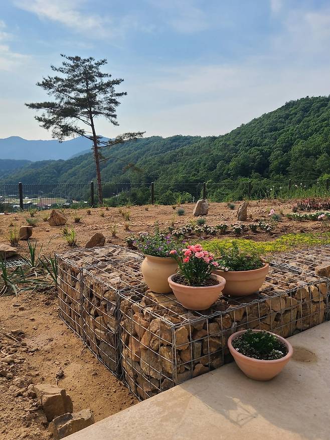 개비온(돌을 담는 철망)에 담아 정원 조경용으로 만들었습니다!^^ (옮기고 처리하는 게 쉽지 않아서.. 가능한 방법을 모색하게 되었죠~~ㅎㅎ) 해놓고 보니 괜찮은 선택인 것 같습니다~ 돌과 개비온의 환상의 콜라보~ 이렇게 완성되었어요.^^ 땅 조건에 따라 달라지는 정원 조경이랍니다~~ㅎㅎ
