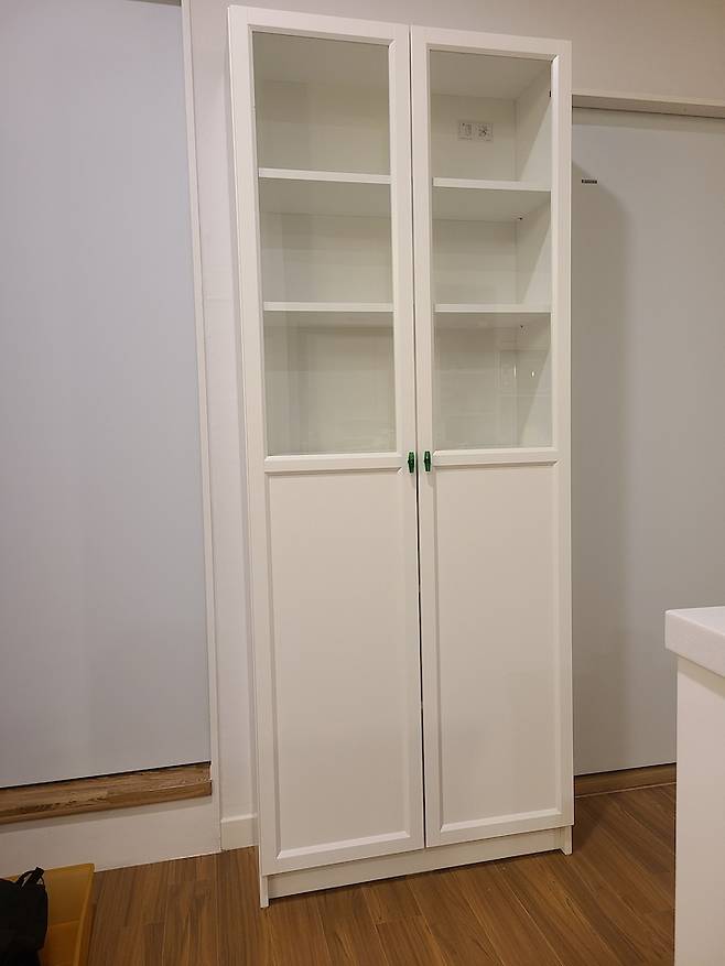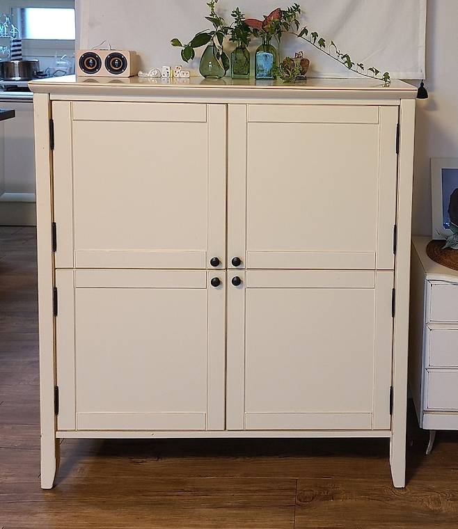 20년 넘게 사용해온 장식장인데 새 옷을 입히고 손잡이를 바꾸어 새것처럼 다시 씁니다~ 설계를 할 때부터 이 자리에 놓으려고 뒤에 벽체를 만들었죠~ㅎㅎ