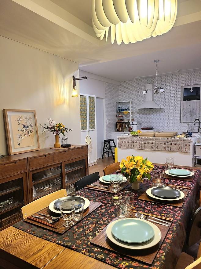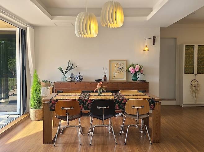 우리 집의 핵심 공간~ 다이닝룸이랍니다. 맛있는 것들을 나누고~ 많은 얘기들과 마음을 나누고~ 행복해지는 자리니까 당연히 중요하겠죠~~!ㅎㅎ 저희 부부가 요즘 하는 말, "우린 앉으면 3시간이야~ㅎㅎ" 무언가 먹기 시작했다가 대화의 장이 되어버리는 희한한 자리랍니다.ㅋㅋ