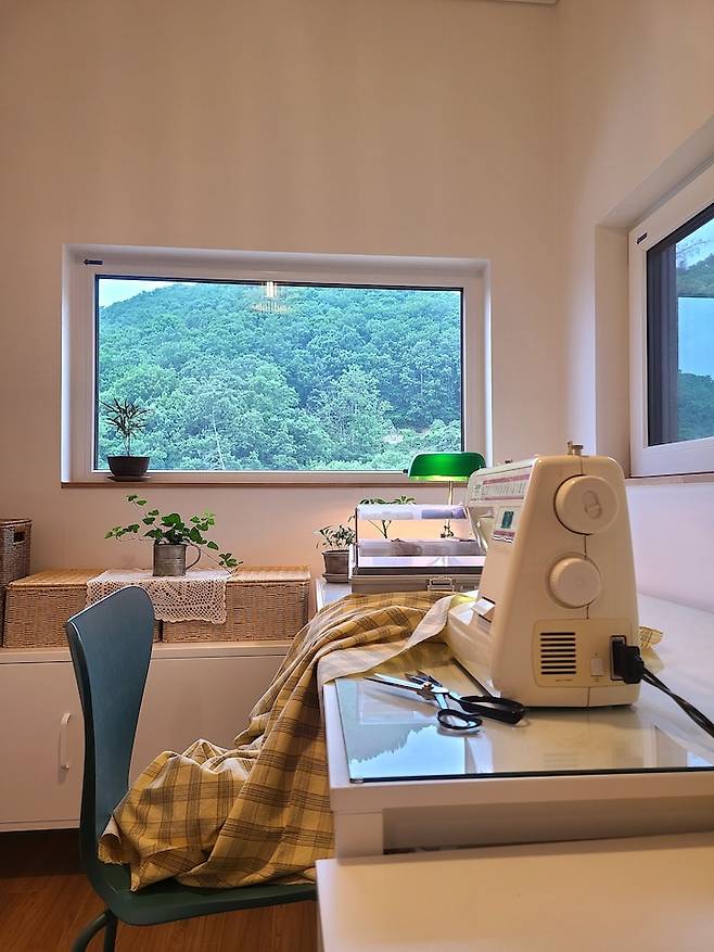 집에 거는 커튼을 수선하거나 테이블보도 만들고.. 소소한 작업들을 하는 공간입니다.^^