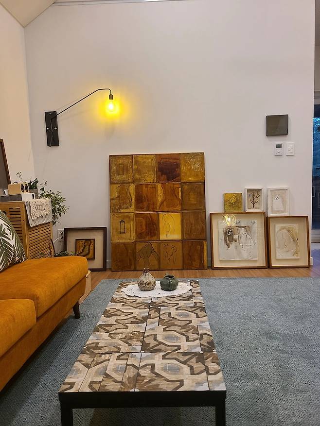 저희 집 두 번째 거실입니다. 1층으로 내려가기 전, 주로 오전 시간을 보내는 공간이죠~ 작품들을 많이 두어서 갤러리 느낌을 내보았습니다~~^^