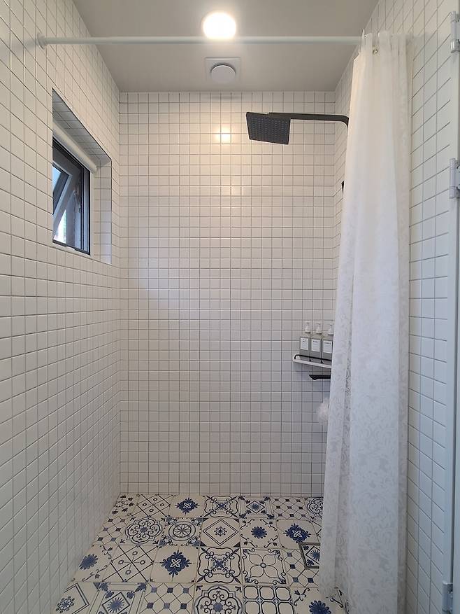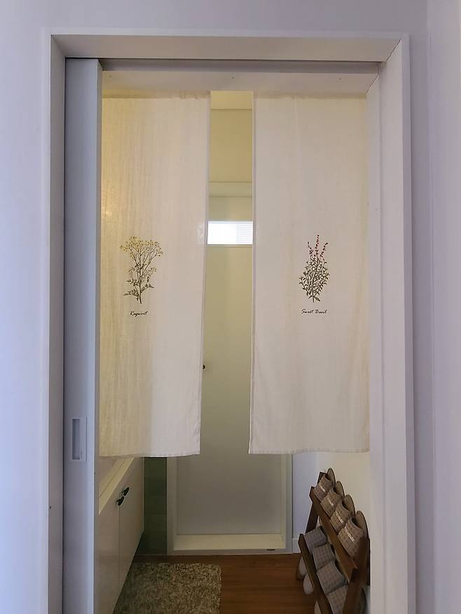 욕실이 너무 오픈되지 않도록 미니 가림막으로 가려주었습니다.