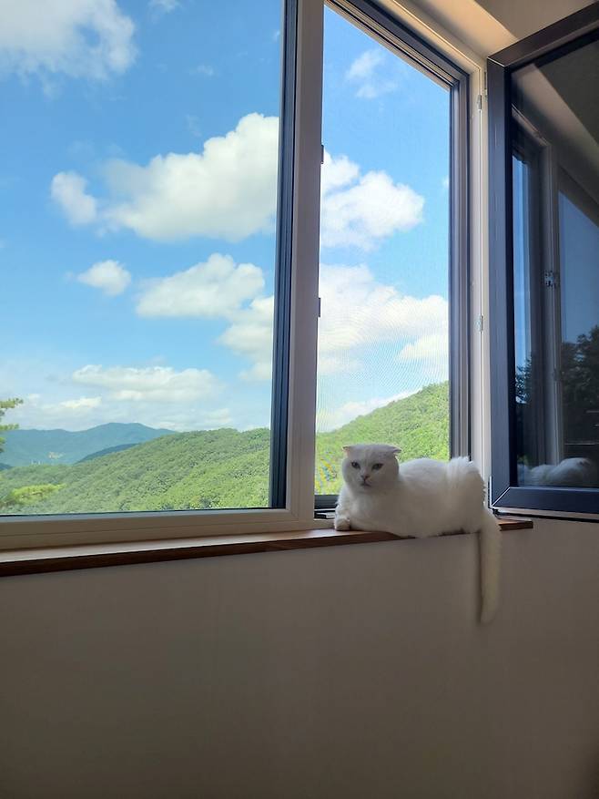 어느 창으로든 산들이 가득 보인다는 건~ 너무 감사한 환경이죠~^^ 안과 밖으로 초록빛이 가득한..곳ㅎ