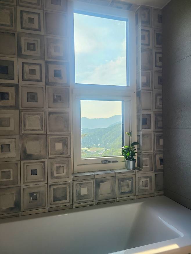 욕실이 습해지는 것이 싫어서 햇빛이 잘 들도록 세로로 긴 창을 냈습니다. 덕분에 물기가 잘 말라서 늘 뽀송뽀송하구요~ 반신욕을 하면서 창밖의 뷰를 보는 것도 너무 좋답니다~~^^
