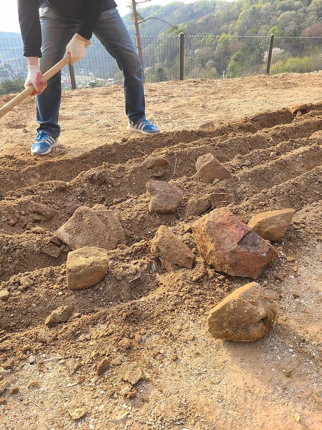 저희 집 마당에는 어마어마한 돌들이 매장되어 있습니다. 무엇을 하나 심을 때마다 서너 개의 돌들이 나오니.. 무엇을 심는 건지, 돌들을 캐는 건지, 잘 모르겠습니다..^^;;; 끝없이 쌓이는 돌들은 처리하기도 어려울 만큼 많아져서..ㅠㅠ;;