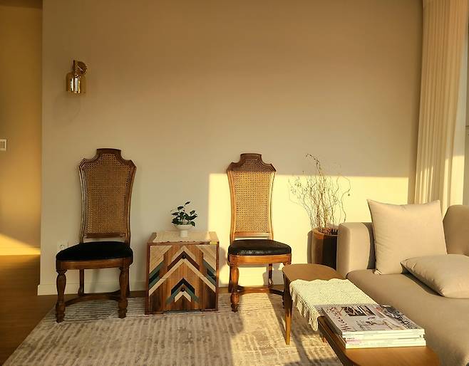 앤티크 의자와 빈티지 협탁이 잘 어울려서 한층 분위기가 따뜻하게 채워졌죠~~ㅎ