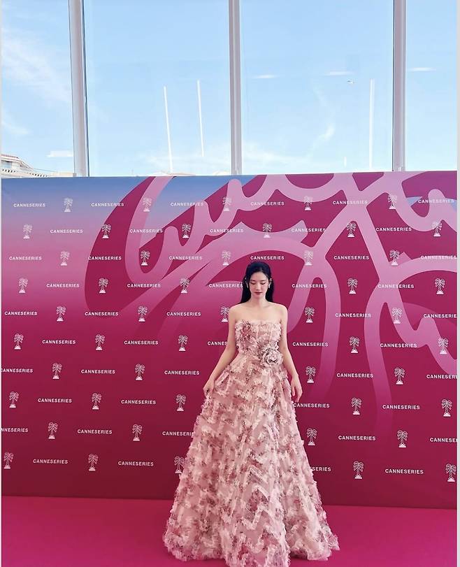 박주현이 칸에 핀 봄꽃처럼 핑크카펫을 수놓았습니다.