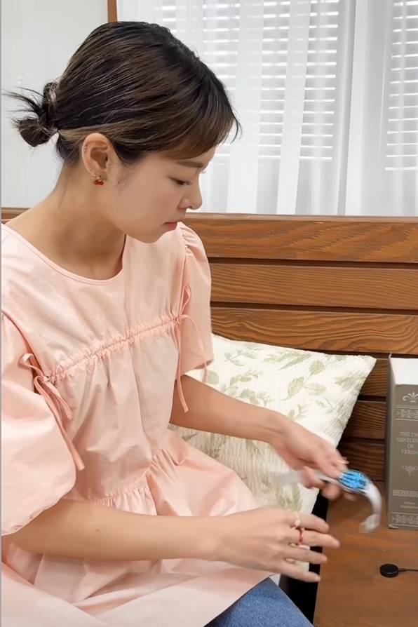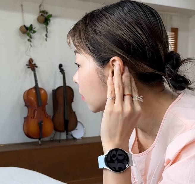 송해나 또한 귀에 꽂히는 시선에 작은 귀걸이로 포인트를 줘 마무리했습니다.
