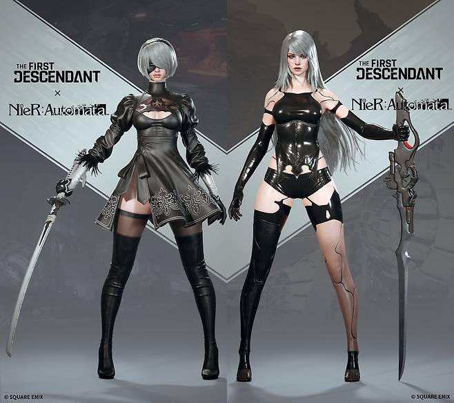 퍼스트 디센던트는 니어 오토마타의 2B와 A2가 추가되며 오리지널 복장, 자폭 복장 2종과 원작의 감성을 살린 부착물, 소셜 모션도 선보일 계획이라 밝혔다.