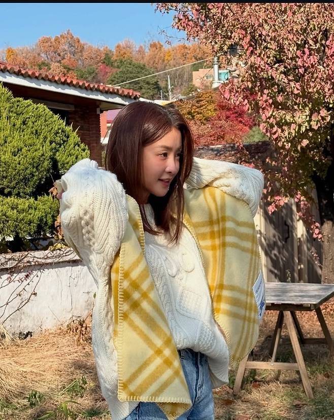 이시영은 아이보리 니트를 착용해 차분하고 포근한 분위기를 연출했습니다.