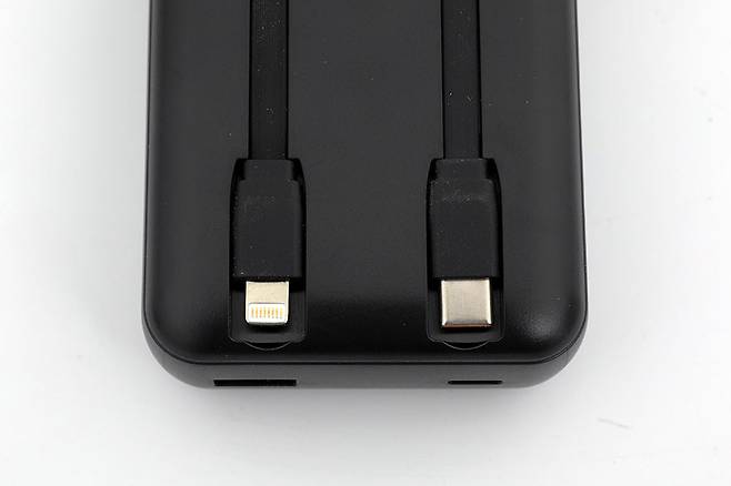 내장 케이블의 커넥터는 아이폰이나 아이패드 등 애플 기기를 위한 라이트닝 8핀과 USB C타입을 각각 하나씩 채택하고 있다.