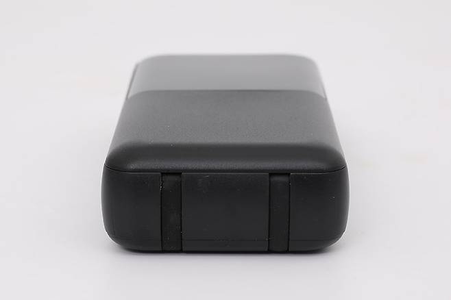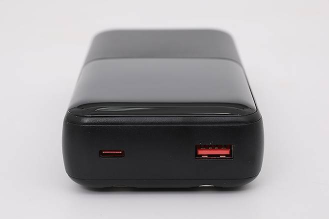 본체 위쪽 측면에는 두 개의 USB 포트가 있는데, 하나는 USB C타입 포트, 또 하나는 USB A타입 포트이다. A타입 포트는 출력 전용이며, C타입 포트는 입력과 출력을 모두 지원한다.