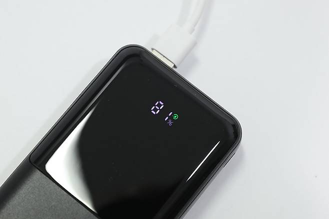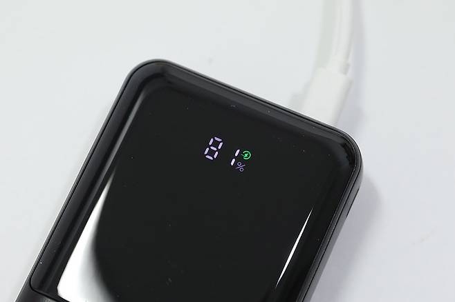 사용 전에 우선 자체 배터리를 충전해주어야 하는데, 내장 케이블은 출력 전용이기 때문에 윗면의 C타입 포트에 케이블을 연결해서 충전해야 한다. 입력용 C타입 포트는 최대 18W까지 지원해 고속 충전 어댑터를 연결하면 전면 디스플레이에 배터리 충전 상태 표시와 함께 녹색의 고속 충전 표시가 함께 나타난다.
