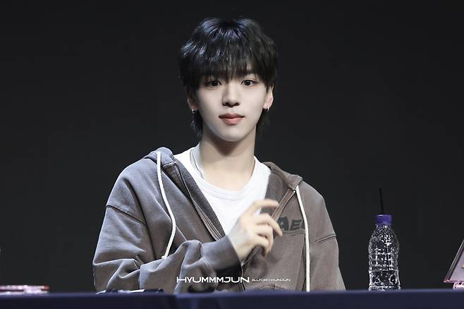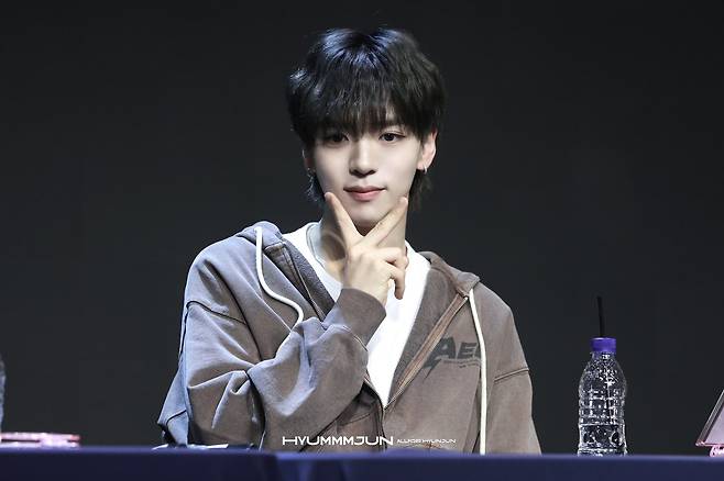 누에라 현준은 팬 사인회에서 후드집업을 착용했는데요
