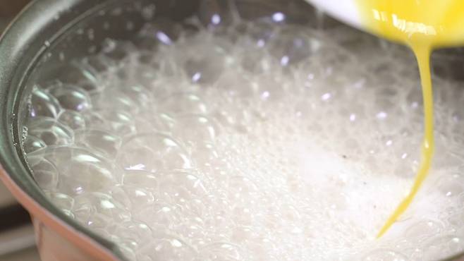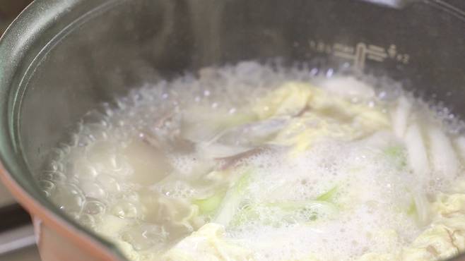 떡이 다 익었을 때, 계란을 풀어 넣으세요. 그리고 소금 대파 등을 넣어 주세요.