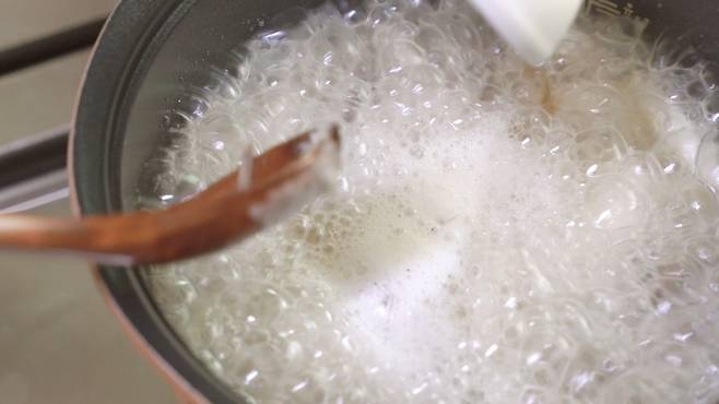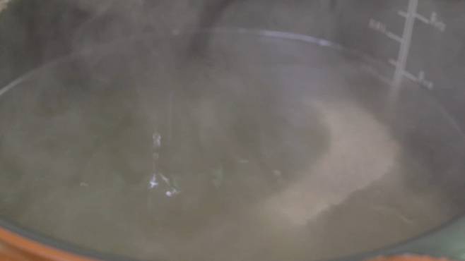 핏물이 빠진 고기를 육수에 넣으세요. 그리고 '강불'에서 팔팔 끓이고, 끓어오르면 '중불'에서 끓이세요.