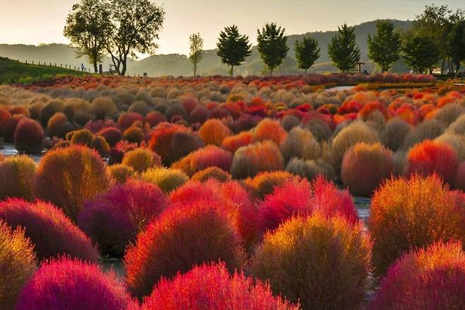 초록색 둥근 형태로 자리 잡고 있다가 가을이 되면 알록달록 자기만의 색으로 물들기 때문에 독특한 광경을 선사한다.