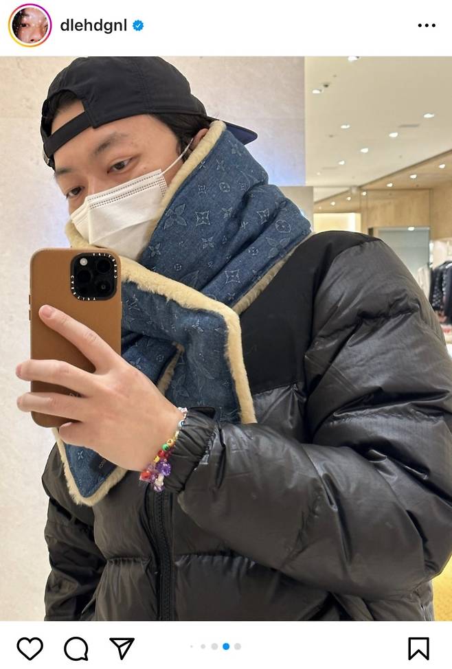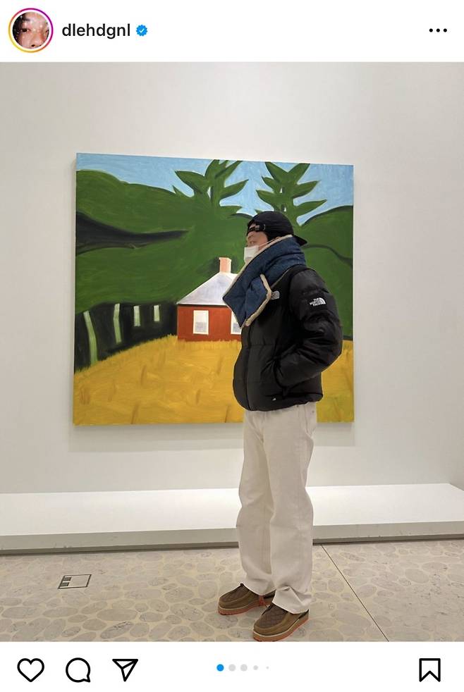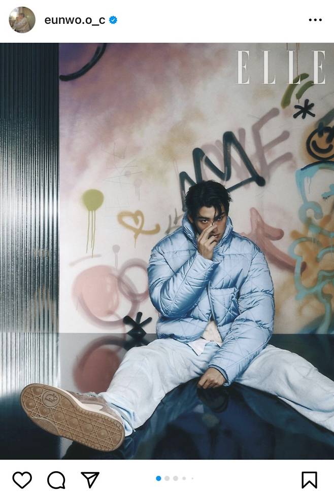차은우는 패딩 컬러와 팬츠 컬러까지 톤을 맞춰