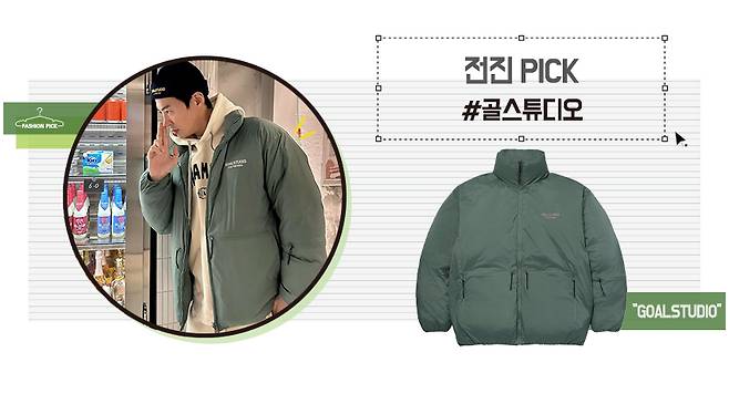 전진의 그린 컬러 숏패딩은 "골스튜디오" 제품