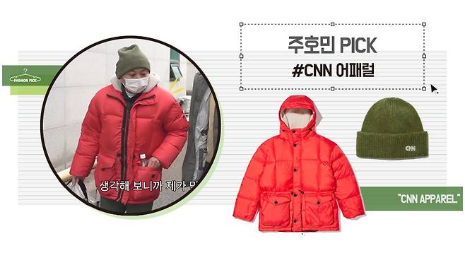 주호민의 숏패딩과 비니는 모두 "CNN 어패럴"