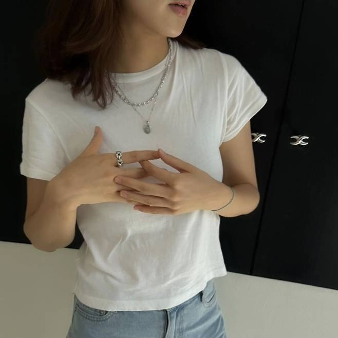 눈에 띄는 것은 액세서리 활용법으로 심플한 실버 체인 목걸이와 반지 레이어드로 포인트를 준 강소라는 디테일까지 빈틈없이 챙긴 스타일링을 보였습니다.