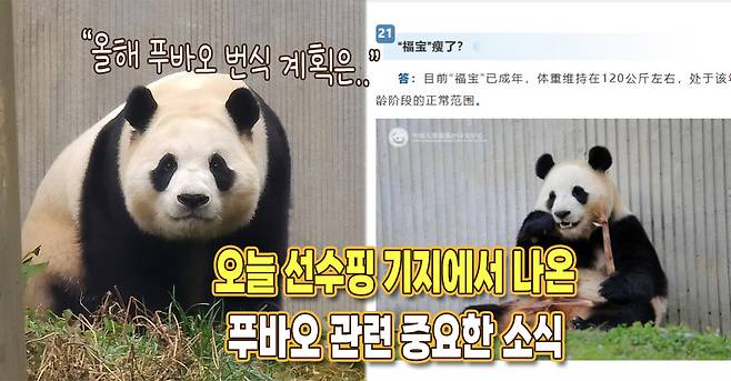 우리들의 영원한 '아기 판다' 푸바오를 사랑하는 팬이라면 이번에 전해진 소식에 관심이 클 듯합니다. 푸바오가 중국으로 떠난 뒤, 혹시나 빠르게 엄마가 되어야 하는 건 아닌지 걱정 섞인 시선이 있었는데요. 오늘 중국자이언트판다보존연구센터에서 팬들이 궁금해 하던 25가지 질문에 대해 공식 답변을 내놓으며 푸바오의 근황을 밝혔습니다.