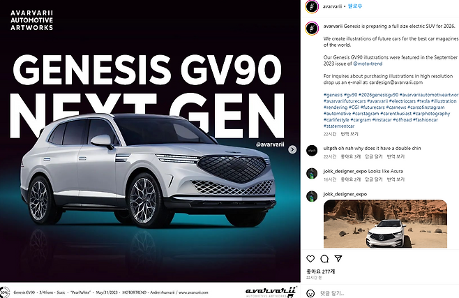제네시스 플래그십 전기 SUV GV90의 최신 예상도가 등장했다.