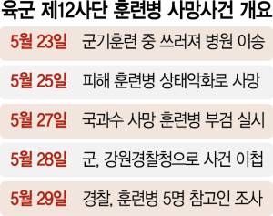 29일 서울경제신문 취재를 종합하면 '육군 제12사단 훈련병 사망 사건'과 관련해 당시 군기훈련 통제 간부였던 A 대위가 훈련병의 건강 상태를 확인하는 절차를 밟지 않았던 정황이 포착됐다.