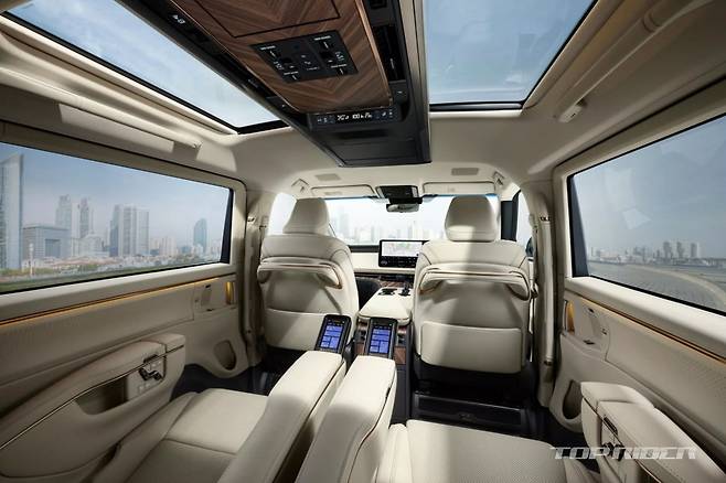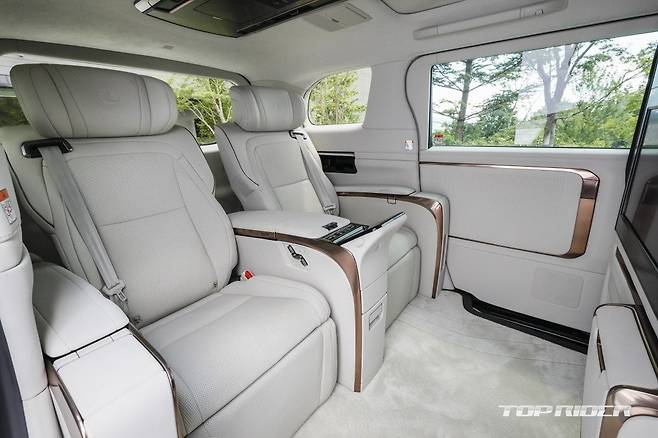 신형 LM 6인승의 3열 시트는 탑승자를 부드럽게 감싸 안고 지지할 수 있도록 설계됐다. 슬라이딩 및 리클라이닝은 수동 방식이다. 3열에는 소형 테이블이 배치됐다. 신형 LM 6인승은 헤드업 디스플레이, 21 스피커 마크 레빈슨 오디오 시스템, 1열 통풍 시트 등이 기본이다.
