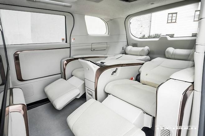신형 LM 2열 시트는 2종의 충격 흡수 소재가 사용됐다. 정차 및 주행시 진동을 줄여준다. 쿠션과 다리 프레임 사이에는 방진 고무가 적용됐다. 후방 공조기는 설정 모드에 따라 시트 위치, 온도, 앰비언트 램프 등을 자동으로 조정한다. 신형 LM 4인승은 6인승과 차별화됐다.