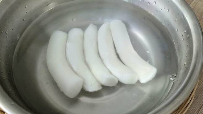 먼저 해동해야 할 냉동 가래떡을 양푼이나 담을 수 있는 그릇에 넣어 주세요.