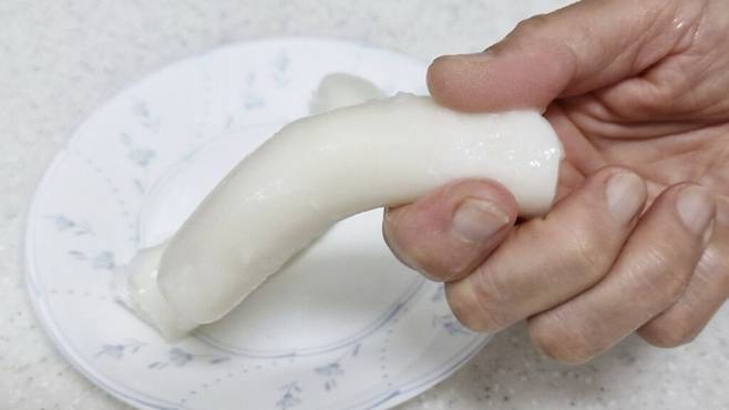 짜잔! 20분 후에 물을 버린 후 모습이에요. 떡이 방앗간에서 바로 나온 것처럼 아주 해동이 잘 되었답니다. 말랑말랑하게 해동된 가래떡은 떡볶이를 해 먹어도 좋고, 그냥 먹어도 좋아요.
