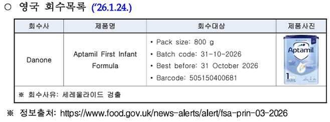 "압타밀 먹이고 계신가요?" 세룰라이드 독소 검출로 영국 전면 리콜... 직구 제품 긴급 확인하세요