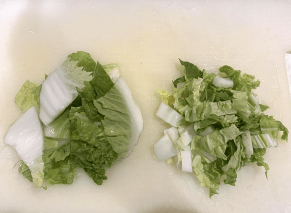 생배추를 바로 무쳐도 되지만, 된장무침용으로는 살짝 데치는 과정이 꼭 필요하다. 너무 오래 익히면 질척해지고, 너무 짧으면 양념이 배지 않기 때문에 소금물에 10초 정도만 데쳐주는 것이 적당하다.