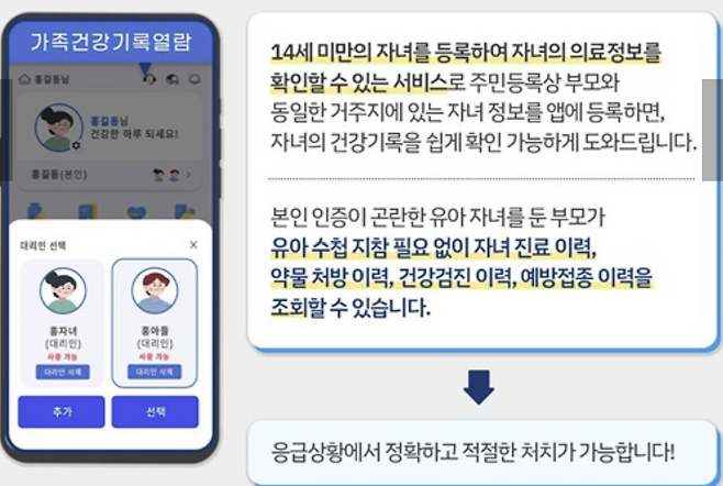 14세 미만의 자녀를 등록하여 자녀의 의료정보를 확인할 수 있는 서비스